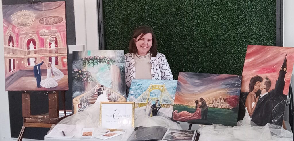As a Pittsburgh live wedding painter, I create heirloom-quality artwork in real time during weddings across the city and surrounding areas.